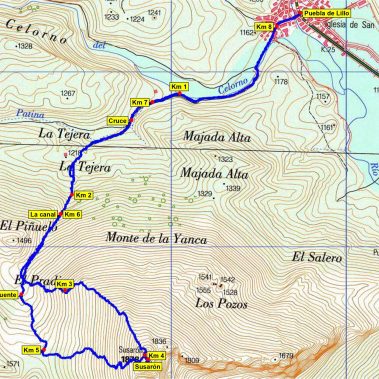 Partiremos del aparcamiento de San Isidro (1.660 m) situado en la base de los remontes, siguiendo la pista que se eleva hacia la Sierra de Sentiles, gira luego al NW para alcanzar la Collada Toneo (1.960 m) y pasa a la vertiente de Ríopinos. Desde esta amplia depresión del cordal nos dirigiremos a la izquierda siguiendo la cresta por una difusa senda hasta la herbosa cima de la Peña Agujas (2141 m), vértice del sector de San Isidro. Al retornar al collado de Toneo, podremos ascender a La Loma (2.024 m). Proseguiremos el camino para en poco tiempo ascender al del Toneo (.2094 m).