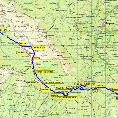 Al llegar al túnel de San Adrián conectamos con el histórico camino que lleva el mismo nombre. Pasamos el túnel y continuamos ascendiendo durante 2 km entre hayas hasta el puerto de Zarra. En esta parte del trayecto seguimos la calzada romana del camino de San Adrián.