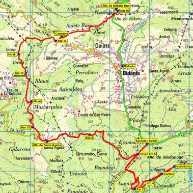 Travesía que transcurre por la provincia de Gipuzkoa desde el Alto de Santuxo hasta el Alto de Bidania para ascender a las siguientes cimas: Iruntxur (743 m) – Illaun (826 m) –