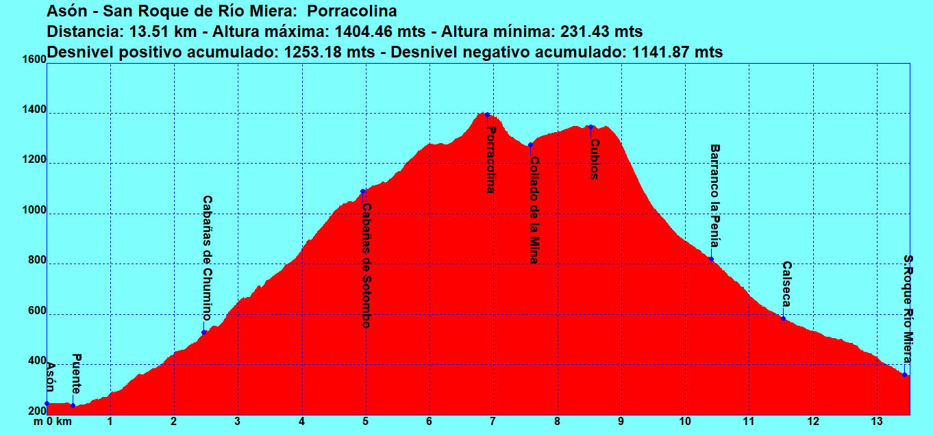 Desde Asón (250 m) sale uno de los itinerarios más espectaculares. Recorremos la carretera 500 m hasta un desvío a la derecha para pasar el río Asón por un puente. Comenzamos la subida por el barranco Rolacias, por donde se precipita el arroyo Cartabón en varios saltos y cascadas que llevan sus aguas al Asón.