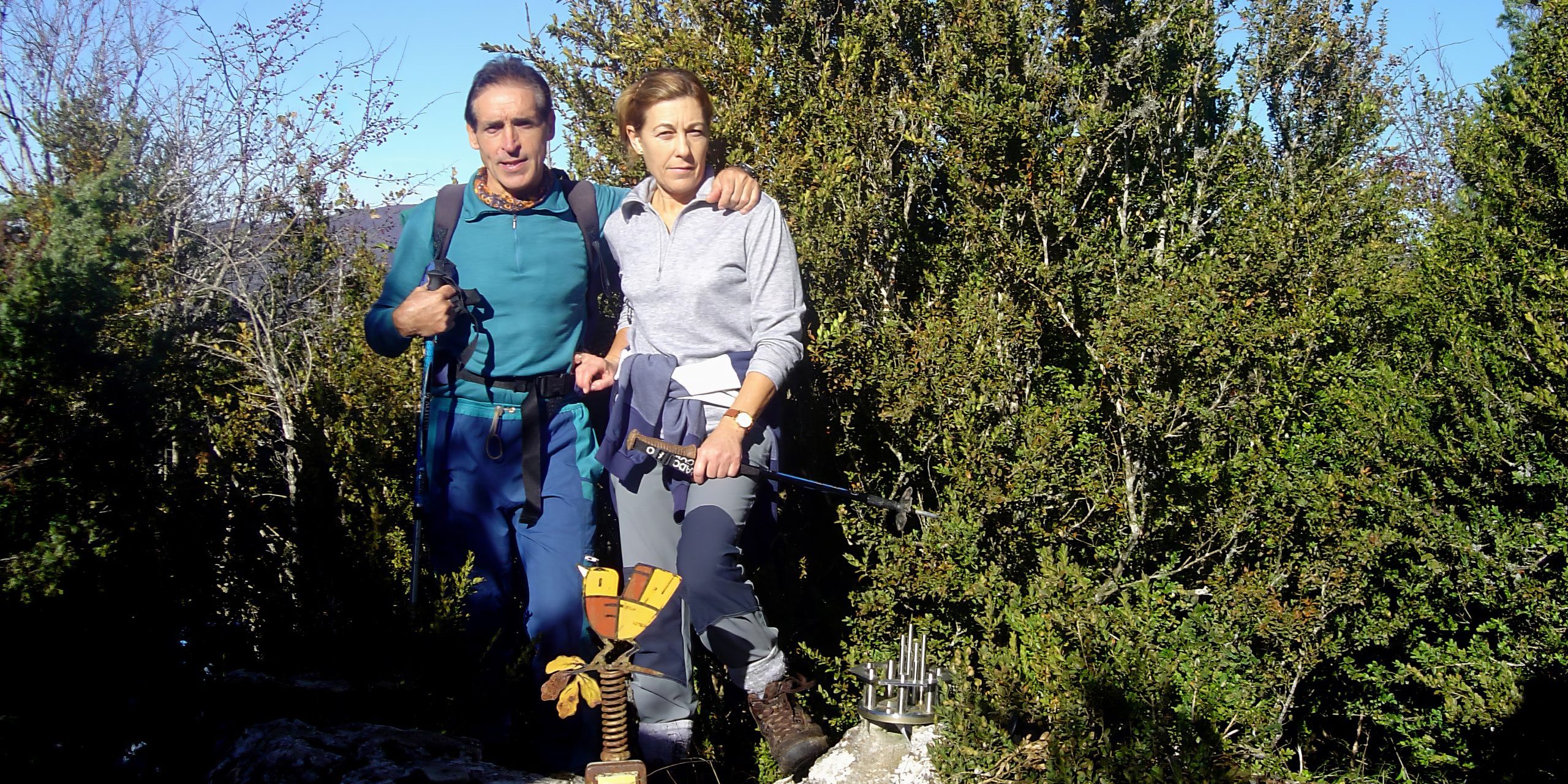 La parte superior, formada por rocas y denso arbolado, puede dificultar encontrar el punto más elevado. Con ayuda de las cintas y túneles abiertos en el boj llegamos a la cima del Baxa (1.166 m), que es una roca caliza junto a un gran haya, identificable por los dos buzones. Solo hay vistas hacia el sur, la zona de los montes que rodean el embalse de Itoiz.