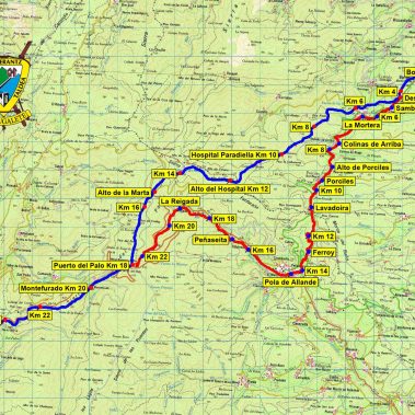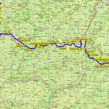 Opción por Hospitales: distancia= 27,3; Tiempo= 7h; Desnivel +=1.381 m; Desnivel -= 1.079 m; Indice dificultad= 105; Dificultad= Fácil