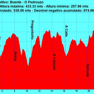 Travesía que transcurre por la provincia de La Coruña desde Boente hasta O Pedrouzo