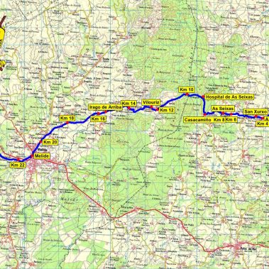 Km 19,7. Castrelo (Albergues). Aviso importante. En esta etapa ya no convive el itinerario de la vía romana con el trazado oficial, sino que la variante de la vía romana ha pasado a ser el único trazado oficial y ya está señalizado como tal.