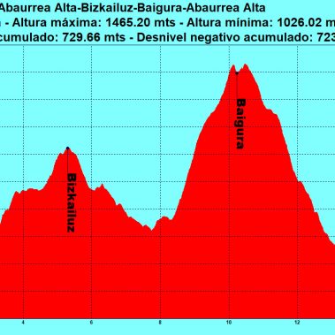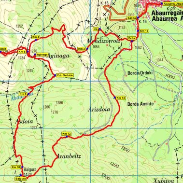 Itinerario circular que transcurre desde Abaurregaina / Abaurrea Alta para ascender a las siguientes cimas: Bizkailuz (1.308 m) y Baigura (1.474 m)
