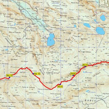 Después bajaremos a otro collado para rodear el Cueto Crespo (2.051) por su lado Norte y llegar a la altura de Muria Brava (2.126) la que ya tiene una trepada más complicada por caída de piedras piedra. Continuaremos rodeando La Muela por la izquierda para alcanzar el Collado de la Verderona (2.075) y a continuación ascenderemos al Peña Orniz (2.191 m). Descenderemos hasta el collado de Orniz para ir cogiendo altura nuevamente y ascender al Pico Cuetalbo (2.074)