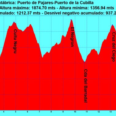 Continuaremos el recorrido para posteriormente alcanzar la siguiente cima, el Negrón (1.896 m). Pico que da nombre al túnel que está debajo por el que transcurre la autovía AP-66. Continuaremos, ahora en largo y acusado descenso de unos 250 metros para pasar por el Collado del Barradal (1608 m). Continuaremos caminando (NO) por debajo de La Cruz del Ciego, para llegar al Valle de la Mucherona.