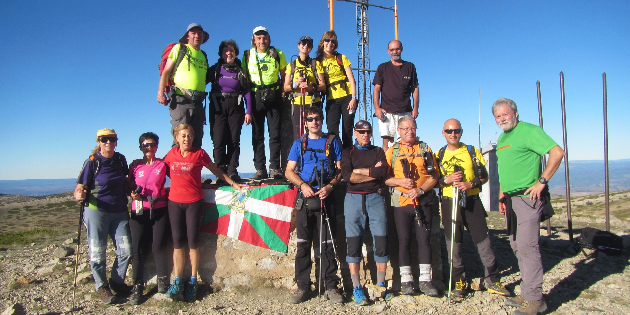 Tras un corto repecho alcanzamos la cumbre de Sierra Alta (1.856 m). Tiene vértice geodésico, buzón, caseta y estación meteorológica, además de buenas vistas con panel indicador.