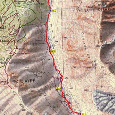 Saldremos del Plateau de lienz, para recorrer unos cinco kilómetros de pista en mal estado para llegar a una explanada junto a la barrera que impide el acceso de coches por la pista hasta el refugio de La Glère, estamos a unos 1800 metros. La pista sube hasta el refugio internándose en el barranco de la Glère a través de varias revueltas, aunque una serie de atajos nos permitirán acortar el evidente recorrido.