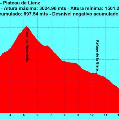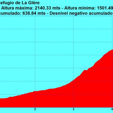 - Llegaremos en Bus hasta el Plateau de Lienz para seguidamente ascender hasta el Refugio de la Glère, son 5 km de subida en unas 2 horas.