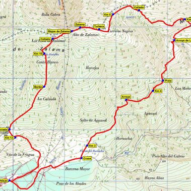 Ahora giraremos a nuestra izquierda para subir la fuerte pendiente que nos llevará hasta una valla que rodea la turbera en recuperación de Tarreros Negros (1.326 m), la cruzaremos para atravesarla, aunque también se puede rodear por la izquierda. (Existe un panel informativo)