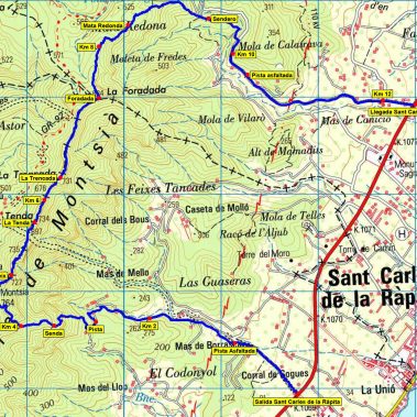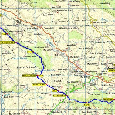 Al poco tiempo dejaremos el PR y continuaremos recto por buen sendero y prácticamente llano. El camino pasará junto a un abrigo pastoril y descenderá hacia la Mallada de la Rabosa, dejando a la derecha un depósito cilíndrico de agua. En la Mallada continuamos por la izquierda y ascendemos en zigzag hacia el alto de La Moleta (468 m).
