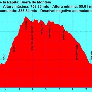 Comenzaremos a caminar por estrecha carretera, después por buen camino y finalmente por senda para alcanzar la cima del Montsià (752 m). Para el descenso caminaremos por la cresta pasando por diferentes cimas hasta llegar a la Foradada (684 m).