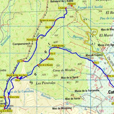 Llegaremos al Mas de La Serra (abandonado) y a su nevera que está un poco más arriba, continuaremos hacia la cumbre pasando por la Nevera Vella. Estas neveras, nos han quedado como testigos del próspero negocio de la nieve, que hubo entre los siglos XVI y XIX.