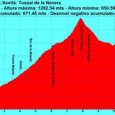 Y así llegaremos a la cima del Tossal de la Nevera (1.286 m), cumbre más alta de la Sierra d’En Celler. Si el día está despejado disfrutaremos de buenas vistas con un horizonte de 360º.