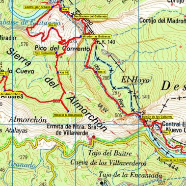 Iremos subiendo por un senderillo que se va desplazando paulatinamente a nuestra derecha y que en continuo y duro ascenso va bordeando la mole de la sierra de Cabrilla, hasta llegar a la altura de una antigua era y los restos del cortijo del Mechorro.