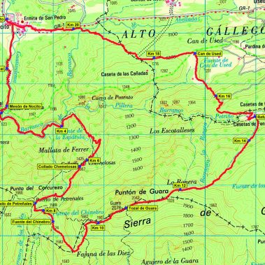 Para seguir la travesía descendemos la cresta oriental. En una pequeña cota (1.967 m) dejamos el cresterío y el camino que sigue la loma para tomar una senda descendente marcada por un gran hito de piedras. Aunque Nocito quede hacia la izquierda, el sendero nos va desviando bastante a la derecha. Llegamos a una pista que seguimos a la izquierda y tras pasar junto al refugio de Fenales, donde hay una fuente, seguimos la pista en zigzag atentos a las indicaciones de los postes en un largo descenso hasta Nocito, donde nos estará esperando el autobús.