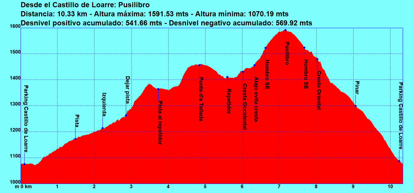 - 14 de Septiembre: Circular desde el Castillo de Loarre: Punta d’a Tallada (1.482 m) – Pusilibro (1.597 m) (F.). Posible Visita al Castillo de Loarre