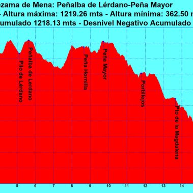 Travesía que trancurre por la provincia de Burgos desde Siones hasta Lezama de Mena para ascender a las siguientes cimas: Peñalba de Lérdano (1.244 m) – Peña Mayor (1.259 m)