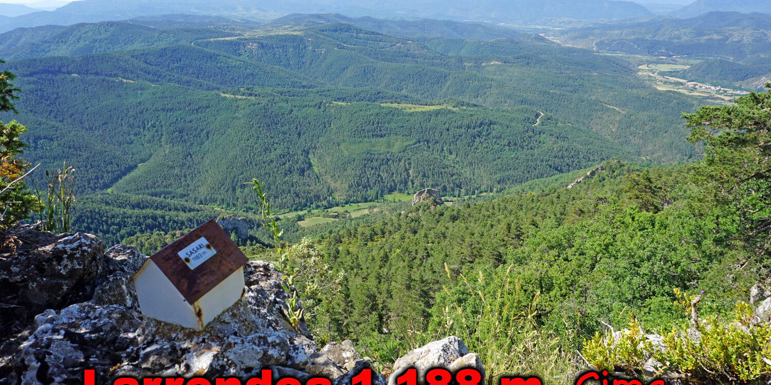 Continuaremos, retrocediendo hasta la última curva donde comienza una senda bien definida junto a una señal caída y que lleva hacia un collado (1.060 m) que está al W. del Larrondoa. Continuaremos caminando por senda bastante difusa hasta volver a coger sendero más marcado. Según vamos caminando veremos un pequeño hito que nos indicará la senda, bastante sucia, de ascensión al Larrondoa (1.188 m). Buzón