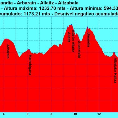 Altzandia / Olano (1.083 m) – Arbarain / Mugarrinagusi / Illaragorri (1.118 m) –– Allaitz (1.245 m) – Umandia (1.225 m) Aitzabala / Albeizko Haitza (1.014 m)