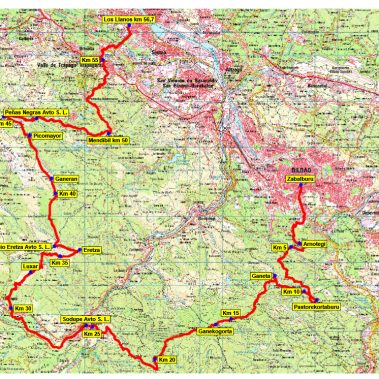 El recorrido de la marcha larga consta de 56,7 kilómetros, un desnivel positivo acumulado de 3677 metros, un desnivel negativo acumulado de 3650 metros e incluye el paso por las siguientes cimas: