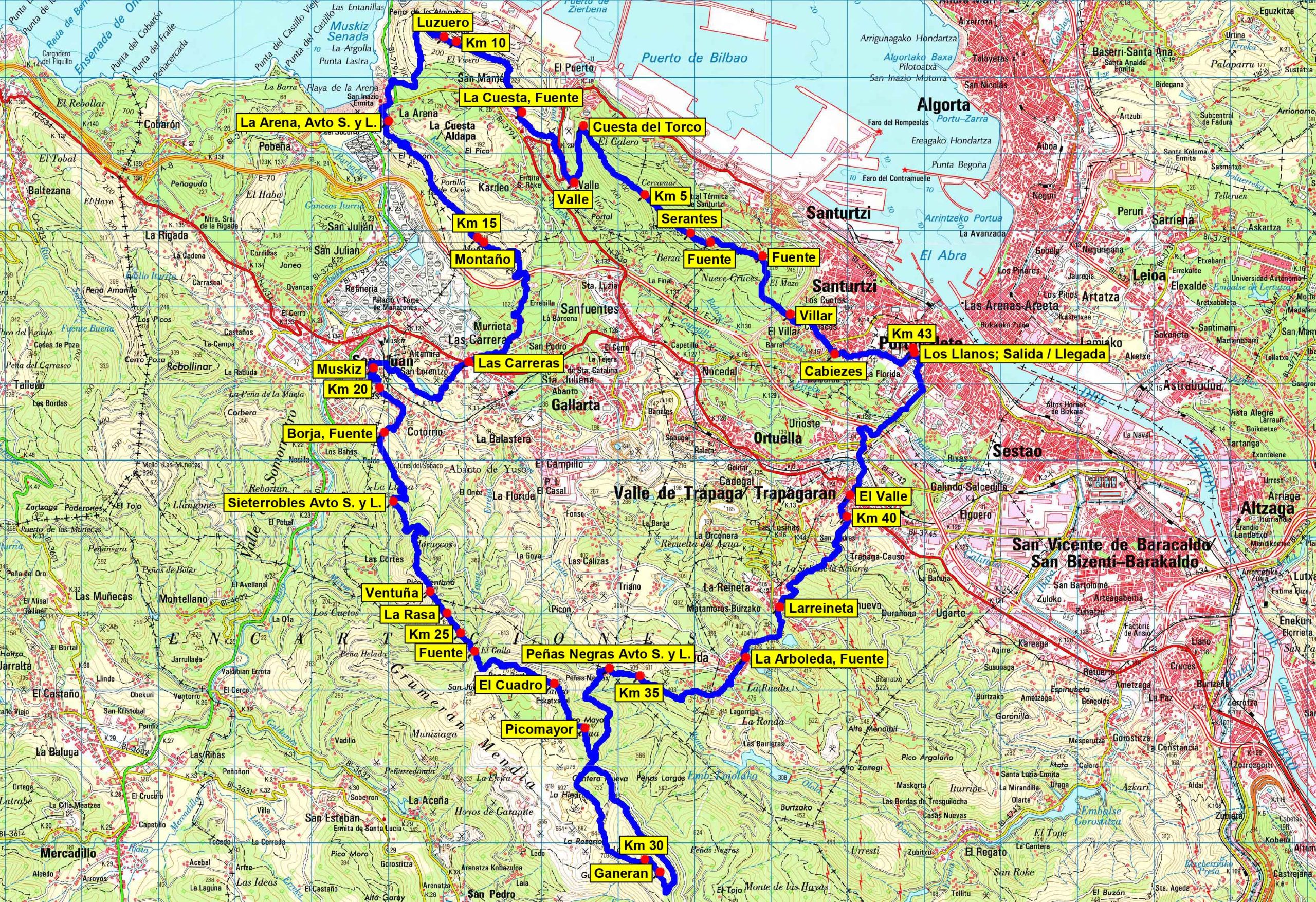 Este año continuaremos con los dos recorridos independientes, con la novedad que la Marcha larga será de 43 km. y aunque existan tramos de recorrido en común, los avituallamientos no estarán compartidos. Ambas marchas tienen su salida y llegada en el frontón de “Los Llanos” que se encuentra colindante al campo de fútbol del Portugalete.
