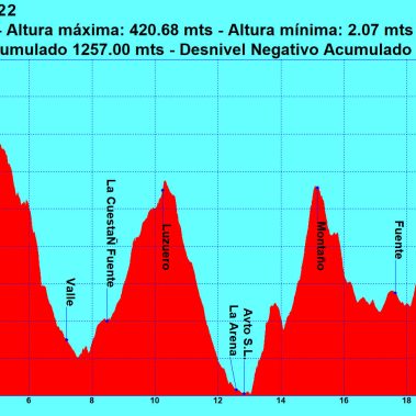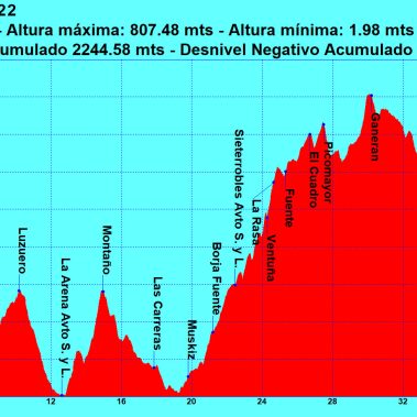 El recorrido de la marcha corta tiene 24 kilómetros y el desnivel positivo de 1.257 metros, lo mismo que el desnivel negativo acumulado.