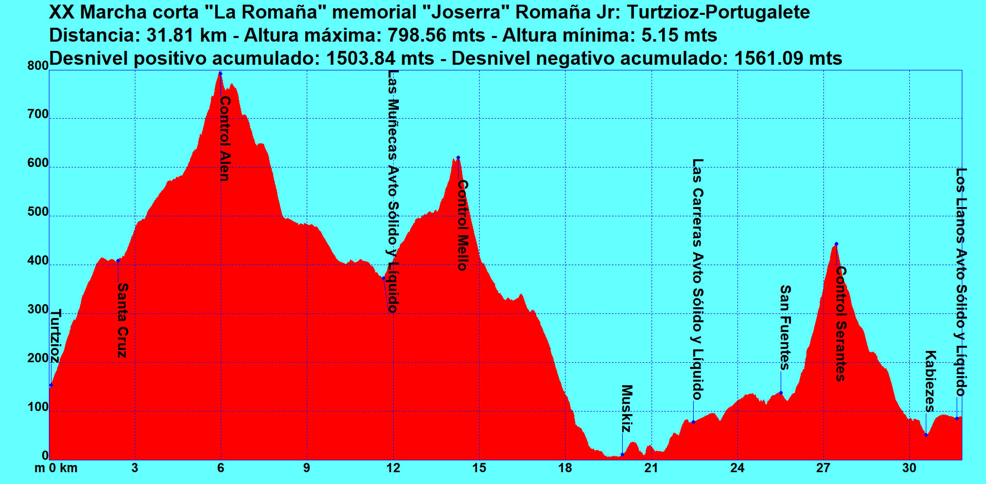 Marcha de montaña que transcurre por Bizkaia durante 32 km desde Turtzioz hasta Portugalete ascendiendo a las cimas de: