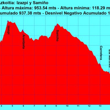 Travesía que transcurre por Gipuzkoa desde Zumarraga hasta Azkoitia para ascender a las siguientes cimas: Izazpi (973 m) – Samiño/Irumagarrieta