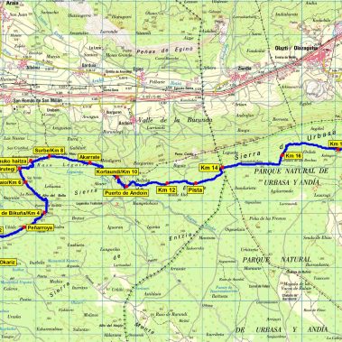 Comenzaremos el recorrido en el puerto de Opakua (1.020 m) con un recorrido de pequeño desnivel hasta la cima. El camino discurre por los hayedos del puerto de Okariz (1.030) y Peña Roja (1.099 m) hasta el puerto de Bikuña (1.077 m).