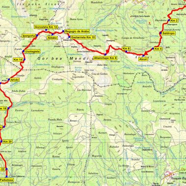 Travesía que transcurre por las provincias de Bilbao y Araba para realizar la 5ª etapa GR-282 desde el Puerto de Barazar hasta Parketxea y ascender a la cima del Usotegieta (1.187 m)