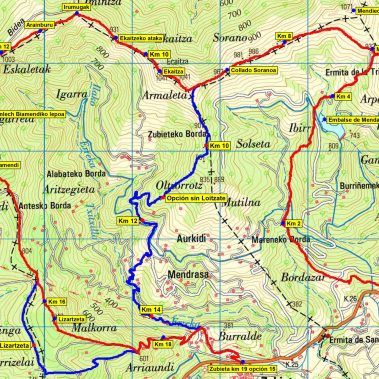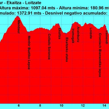 Opción sólo Mendaur : Distancia= 15 km; Tiempo= 5 h.; Desnivel + = 1.075 m; Desnivel – = 1.052 m; Dificultad = Fácil; Indice dificultad= 103