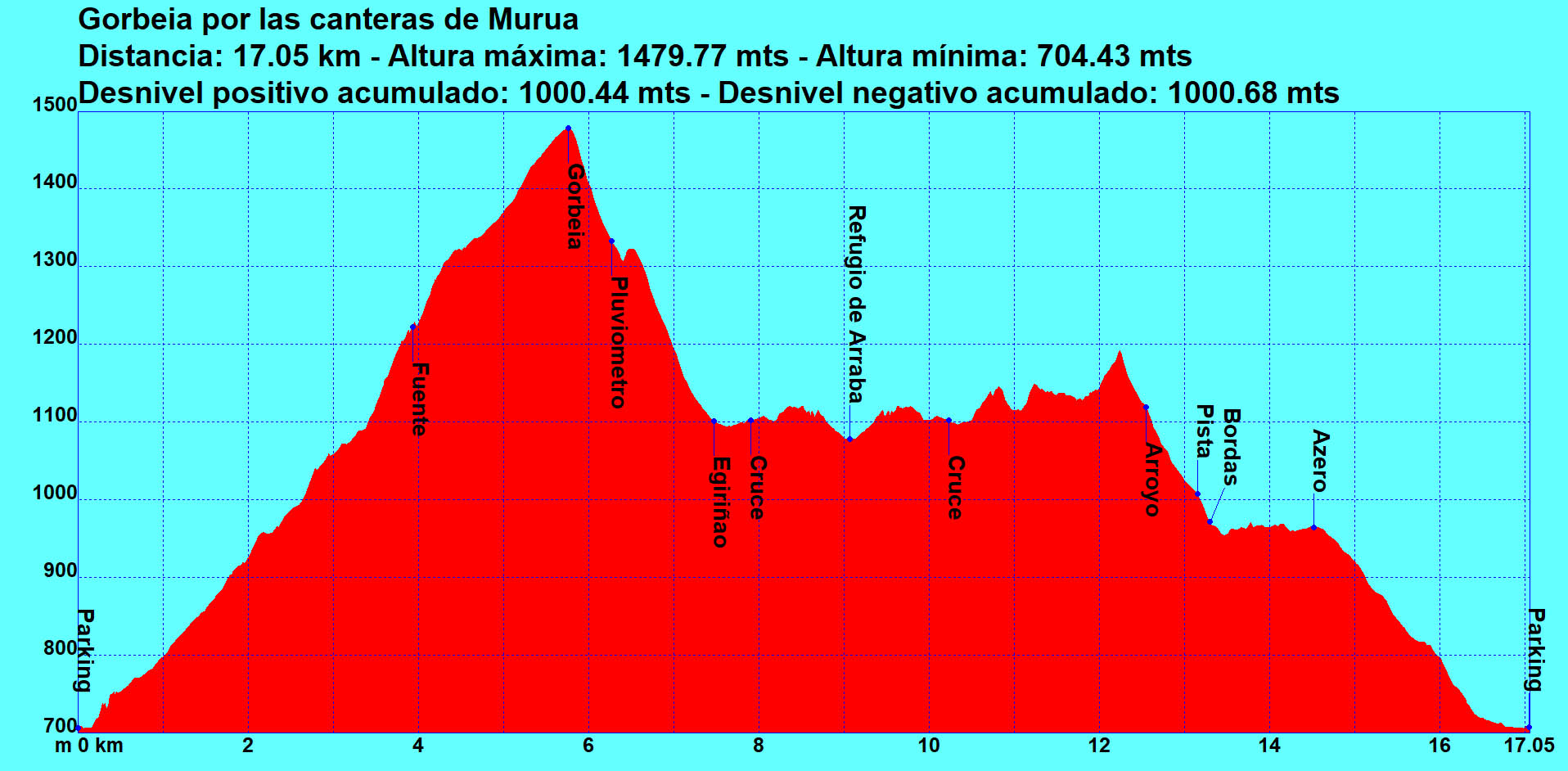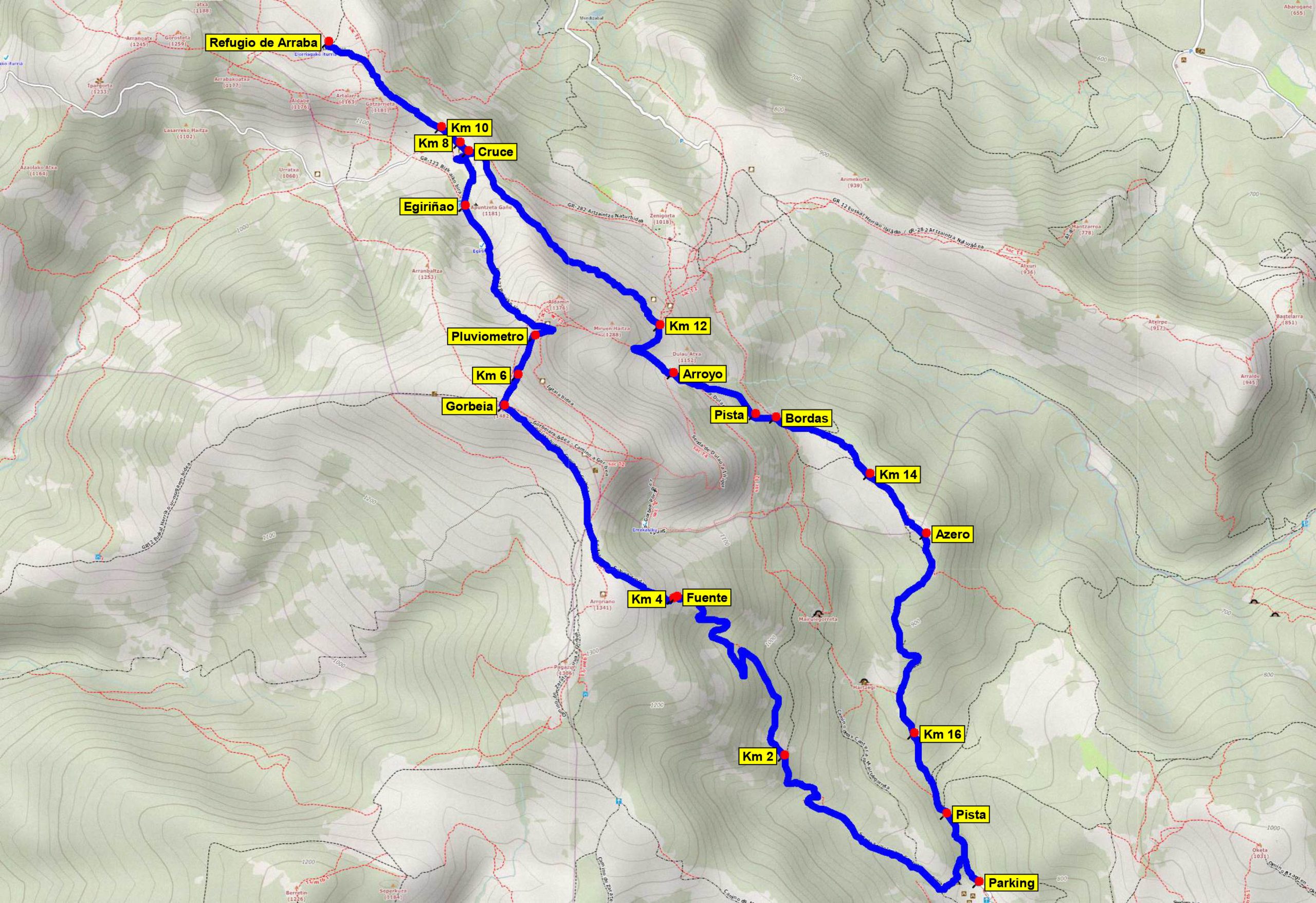 La ruta comienza desde el parking (730 m) habilitado en las canteras de Murua. Caminaremos por una pista ancha y bien marcada que se adentra en el bosque. A medida que ganamos altura, la pista se convierte en sendero más estrecho, cruzando zonas de pasto y arbolado.