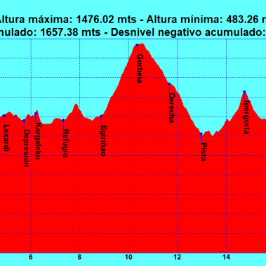 Data: 2011-12-30Ordua: 08:00Izena eman: CerradaDistantzia: 21 KmDenbora: 7 hGaraiera +: 1657 mGaraiera -: 1662 mZailtasun: ModeradoZailtasun-indize: 146 Itinerario circular que transcurre por Bizkaia y Araba desde Urigoiti para ascender al Gorbeia (1.482 m)Ibilbidea FitxategiakArchivo GPX