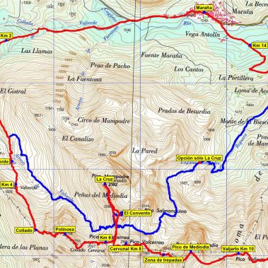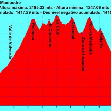 Circular que transcurre por la provincia de León realizando la Integral al macizo de Mampodre desde Maraña para ascender las siguientes cimas: Polinosa (2.159 m) – La Cruz (2.192 m) – Pico del Convento (2.146 m) – Cervunal (2.168 m) – Pico del Mediodía (2.176 m) – Valjarto (2.035 m)