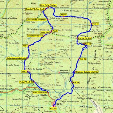 Travesía que transcurre por la provincia de León desde el Área recreativa Los Carbellares hasta la La Uña para ascender a las siguientes cimas: Peña Ten (2.142 m) – Pileñes (2.012 m)