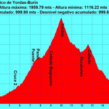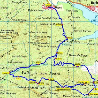 Saldremos a una pequeña collada, donde nos introduciremos en la majada Baguyoso donde apenas se aprecian los restos de la misma. Una vez atravesemos la majada, llegaremos al collado Baguyoso (1.699 m), donde siguiendo las marcas y por sendero, alcanzaremos un pequeño collado entre el medio de varios hitos, que siguiéndolos nos llevarán a la cima del Pico Yordas o Burin (1.964 m), donde encontraremos la cruz de cumbre y tendremos unas preciosas vistas sobre el embalse de Riaño.