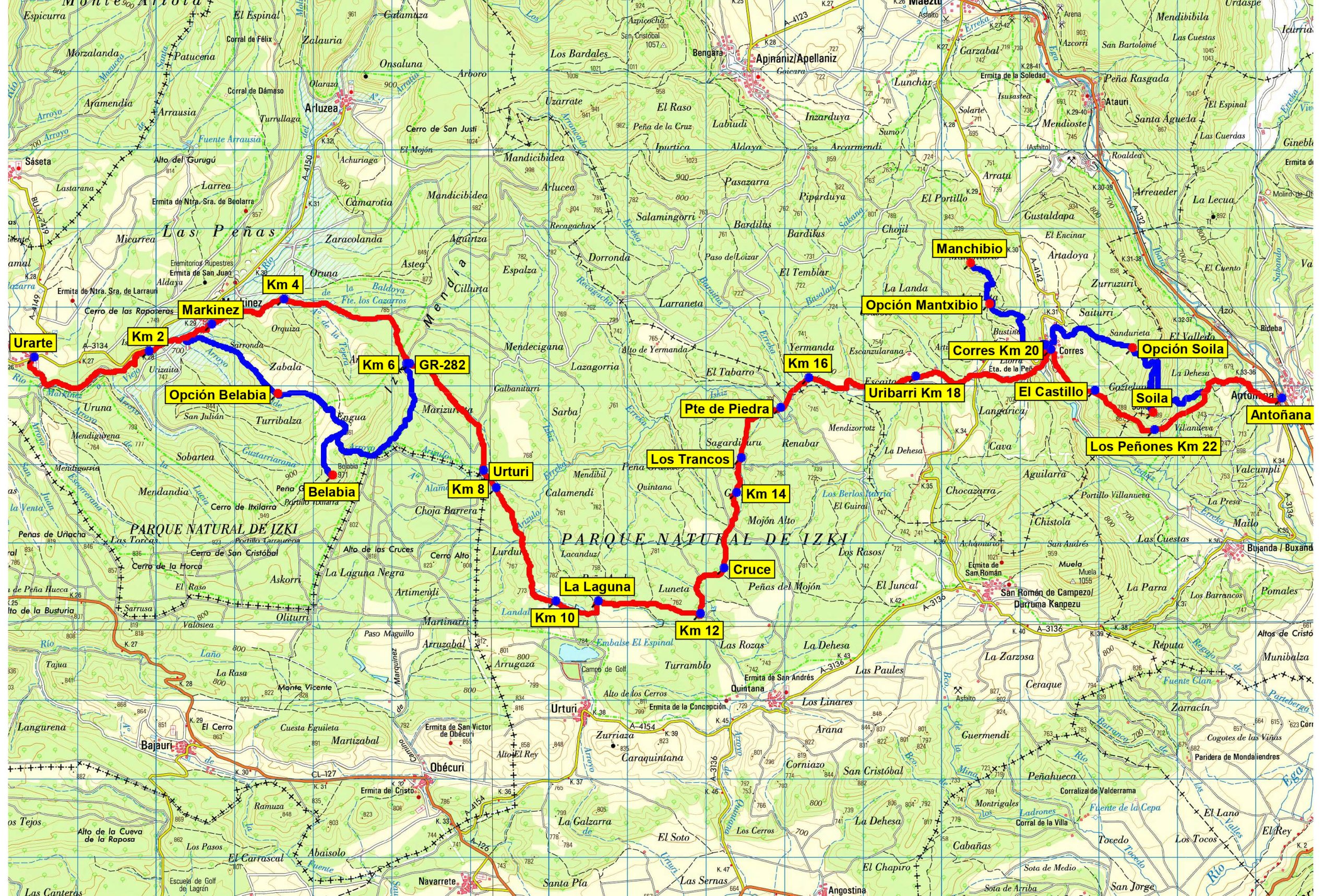 Travesía que trascurre por Nafarroa desde Mendióroz hasta Zubiri para ascender a las siguientes cimas: Belokain (968 m) – Lakarri (1.046 m) – Measkoitz (1.014 m)