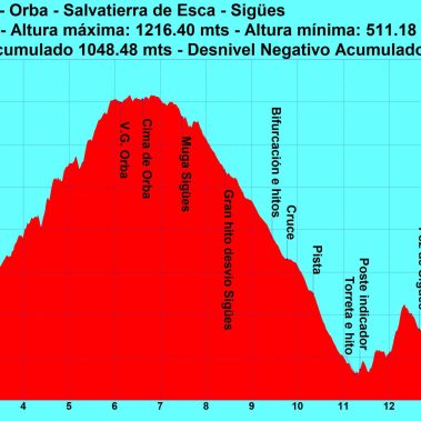 Comenzaremos a caminar en la N-240 a 4,4 Km dirección Puente la reina de Jaca después del cruce con la carretera de Roncal. Empezaremos por una ancha pista hasta el punto donde se cruza con el camino que viene de Sigüés. A partir de aquí el camino se irá estrechando hasta convertirse en sendero al pie de la Sierra. La Subida no tiene pérdida, porque solo se puede seguir esa senda. Tendremos preciosas vistas conforme vayamos ganando altura. Una vez en lo alto de la sierra llanearemos un poco y enseguida alcanzaremos el vértice geodésico del Orba (1.226 m) que está colocado en un punto ligeramente más bajo. Continuaremos por la cresta en dirección NO hasta llegar a un grupo de rocas que, tras una sencilla trepada, nos dejará en el punto más elevado de la meseta, la cima del Orba (1.244 m).