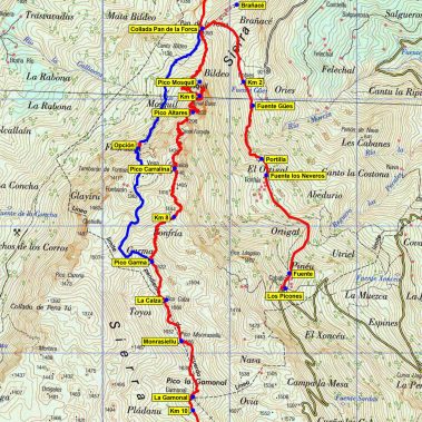 - 6 de Diciembre: Braña de los Picones – Alto de Angliru : La Mostayal (1.305 m) – Mosquil (1.295 m) – La Calzá (1.675 m) – Monrasiello (1.674 m) – La Gamonal (1.703 m)