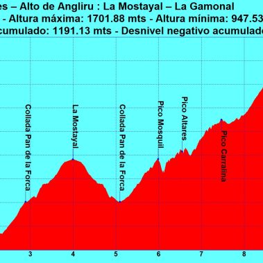 La Mostayal (1.305 m) – Mosquil (1.295 m) – La Calzá (1.675 m) – Monrasiello (1.674 m) – La Gamonal (1.703 m)