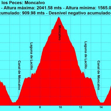 Seguidamente remontaremos (NW) la ladera del Alto de las Tres Marías (1.888 m) y superando ahora el lomo del cordal (W) alcanzaremos la cota (2.031 m) y posteriormente (S) la cumbre del Moncalvo (2.044 m). Vértice Geodésico desde el cual se obtienen grandes vistas de la región.