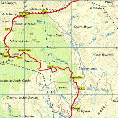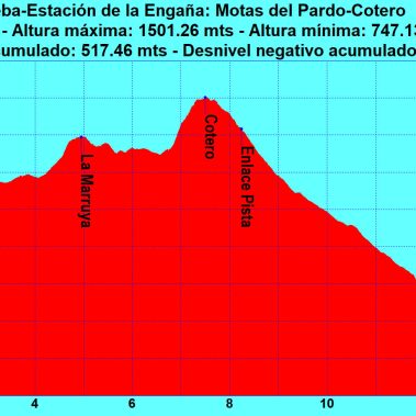 Para llegar a Cotero (1.501 m) el recorrido es claro y muy evidente, solo seguir la loma hasta su base y tirar recto por la ladera. Empinada pero fácil. Vértice Geodésico y Buzón. El descenso hasta la estación de la Engaña la realizaremos prácticamente por pista, salvándola en algunos momentos por atajos.