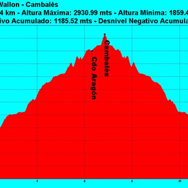 Pasar a la vertiente O del Cambalès y comenzar a rodearlo por una vaguada en dirección NO hasta situarnos debajo de la pala S del Cambalès por la que ascenderemos por moderada pendiente pudiendo llegar con algún paso obligado al final hasta su cumbre 3h 30’ (2.965m).