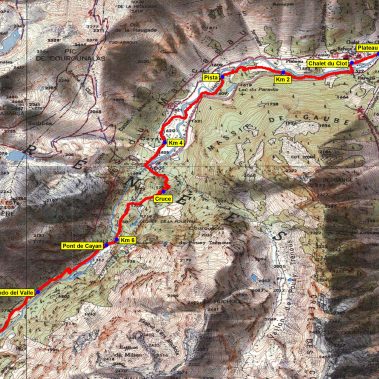 En Wallon tomaremos el marcado sendero que se eleva con decisión hasta el cerrado Lac Nère (2.309 m.) (1 h). Un sendero muy marcado lo rodea por la derecha y se eleva hasta el Lac du Pourtet, lo bordearemos por su derecha, cruzando una pared que ha sido tallada para permitir el paso, al final se abre a nuestros pies un valle, salpicado por los Lacs de Pourtet y L’Embarrat,