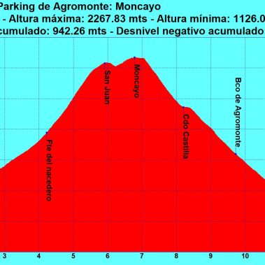 Iremos ascendiendo el barranco por una senda muy bien definida hasta alcanzar el Cerro de San Juan (2282 m). Ahora descenderemos un poco y volveremos a ascender para llegar a la cima del Monacayo/San Miguel (2.314 m). En la cumbre encontraremos un vértice geodésico y una imagen de la Virgen del Pilar, además de numerosos ventisqueros para protegerse del frio viento que sopla en este pico.